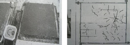 梁板結構表面積大,水分容易蒸發,水化容易散失,溫升不高,因此,水分散失和二次振搗壓實抹平不足是導致梁板結構早期裂縫的重要因素,隨著混凝土齡期的增長和環境的變化,會加劇早期裂縫的擴展,有可能成為有害的貫穿裂縫。下圖-11、圖-12所示試驗充分說明,水分蒸發對裂縫發生和擴展的影響,也說明了保濕養護,二次振搗和壓抹對裂縫控制的有效作用。